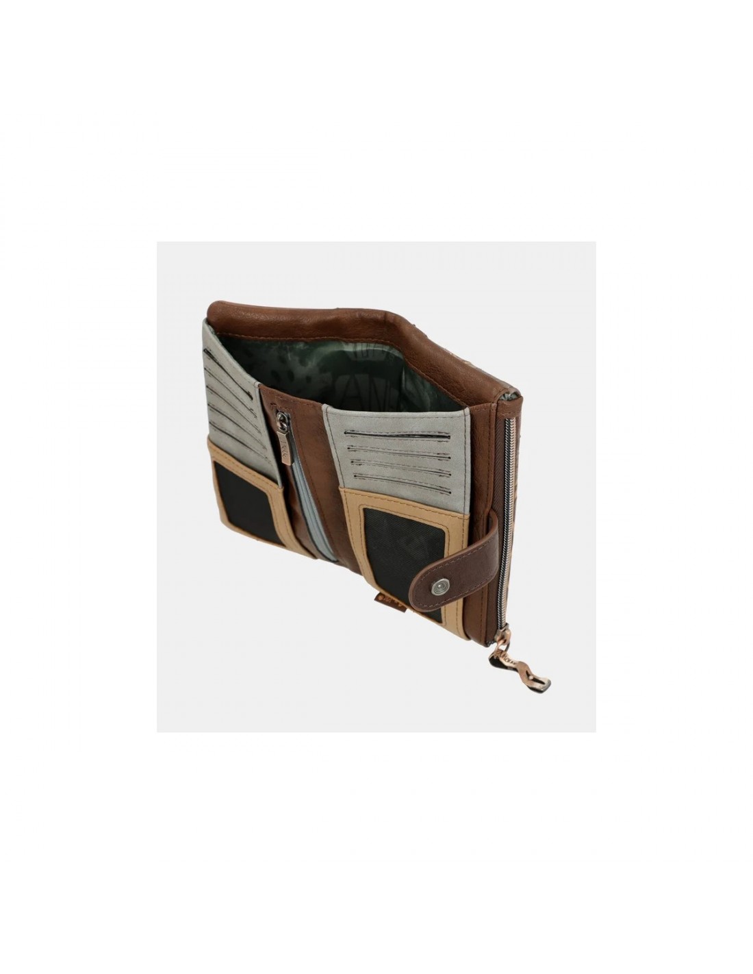 Es un billetero de tamaño grande. El material con el que está realizado es flexible. Cuenta con dos compartimentos principales: la parte trasera, donde encontrarás un amplio billetero y espacio para billetes o documentos. En la parte superior cuenta con cremallera, y en el interior podrás guardar monedas. Todo el interior va forrado.